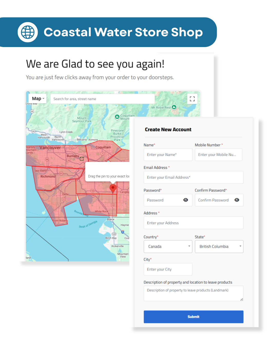 Create your account on Coastal Water Store Shop, our delivery site. Use your delivery account email to sign in – or create one if you’re new.